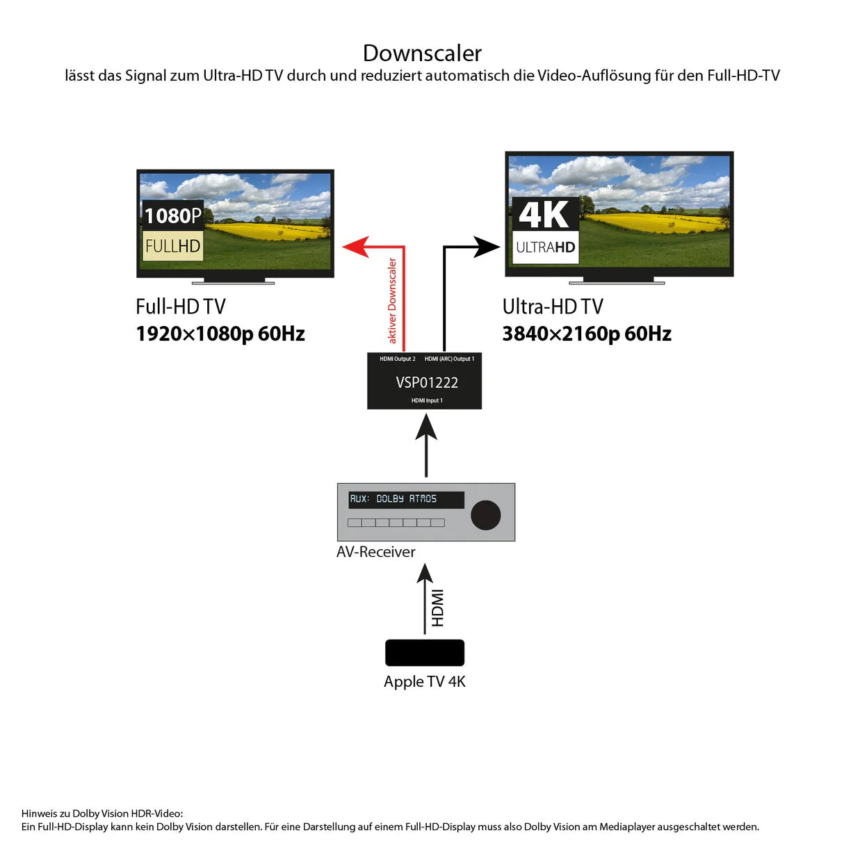 FeinTech VSP01222 HDMI 2.0 Dual-Splitter 1x2 with ARC Pass